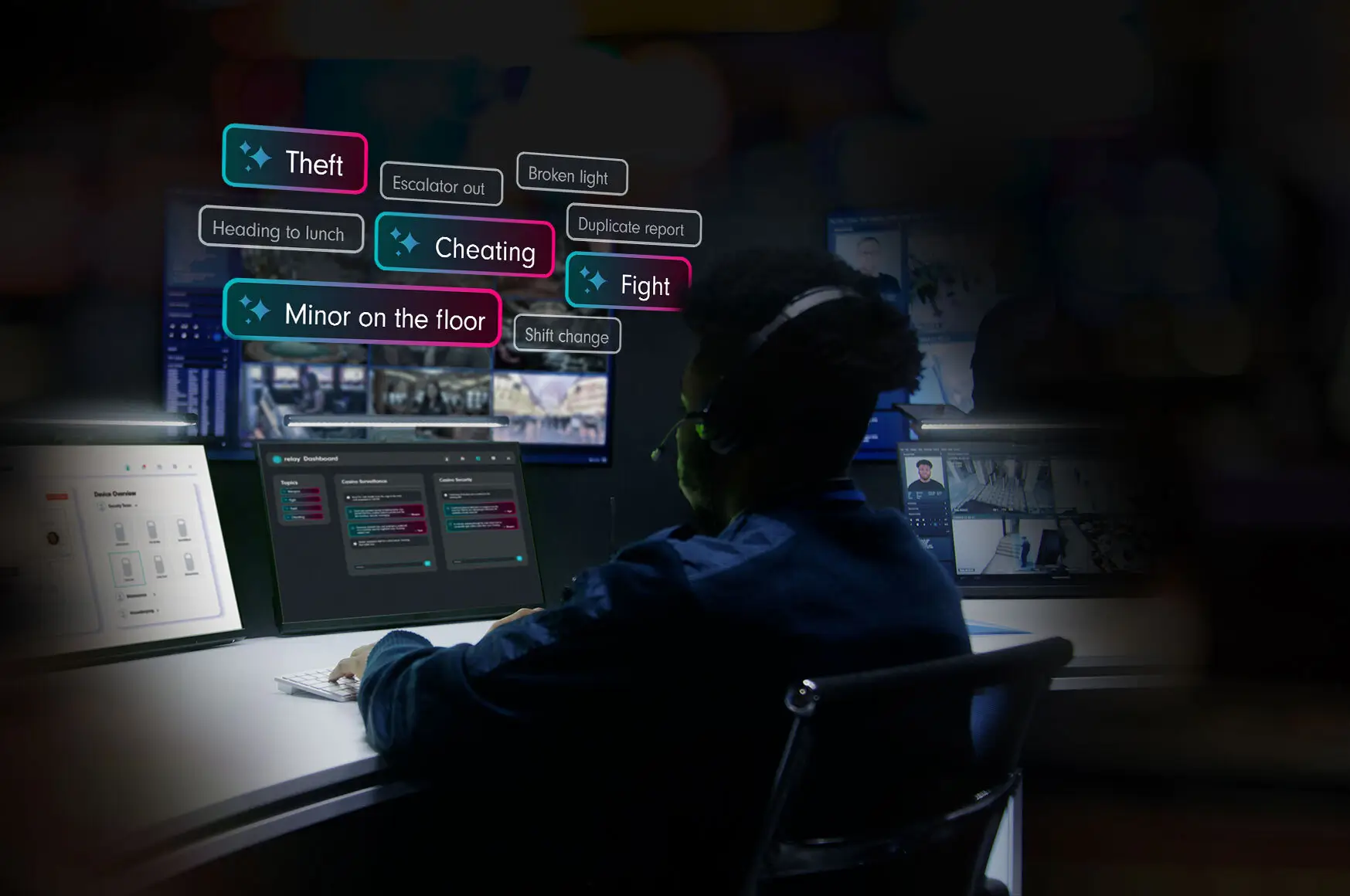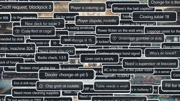 Relay helps your team filter out the noise and focus on what’s important. While your team handles the everyday chatter—such as “Trash pickup” or “Broken chair at the bar”—Relay is on alert, helping you find the signal in the noise. When a message like “Past Posting at Table 4. Suspect moving west,” is spoken, you’re immediately alerted.