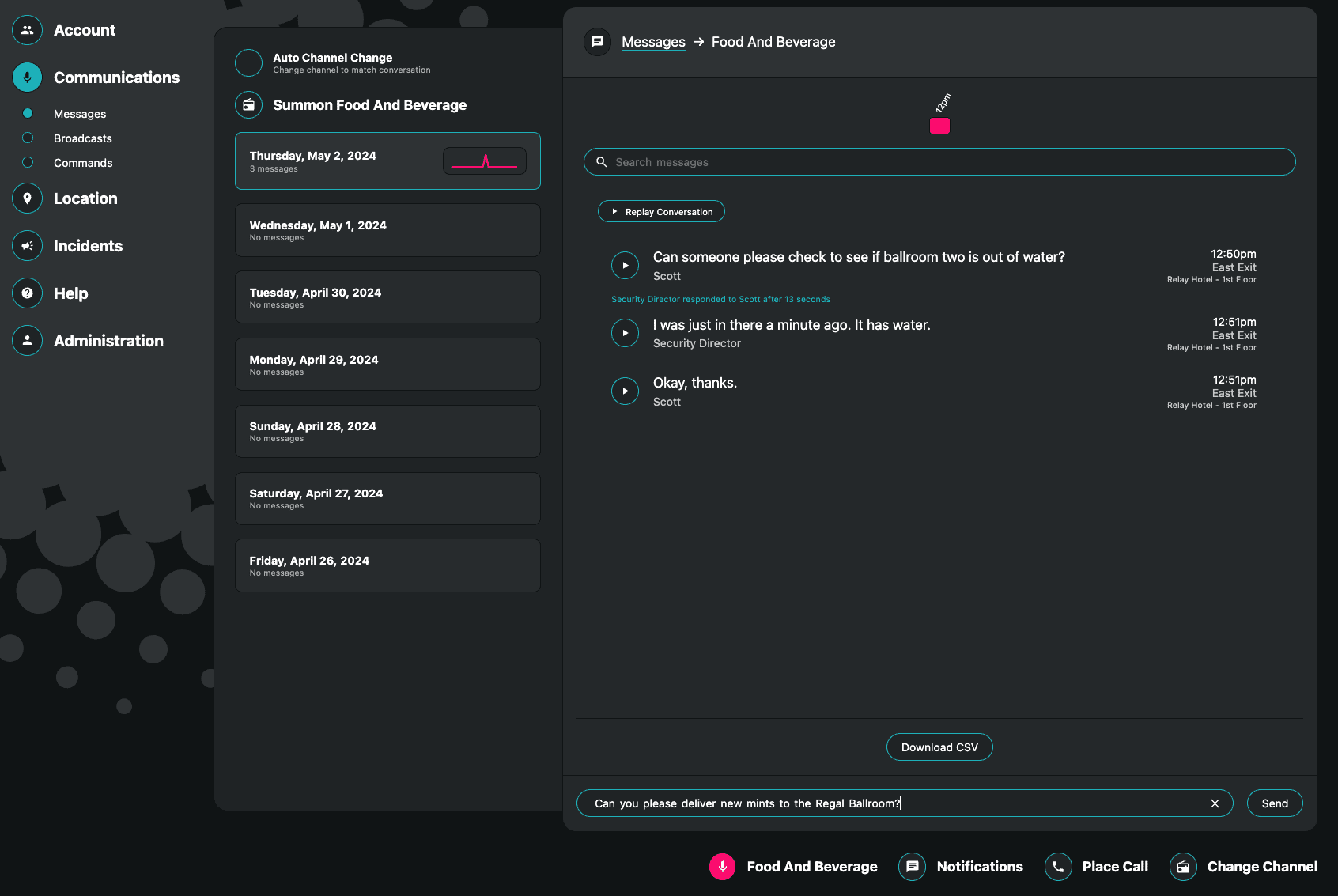 Text to voice offers a discreet way to communicate with your team, perfect for sensitive topics like guest or security issues you don’t want overheard. No need to wait until guests are out of earshot, you can send it immediately to take quicker, discreet action. It’s also ideal for quiet environments like offices where voice comms could be disruptive to those around you, or loud settings where ensuring message clarity is critical.
