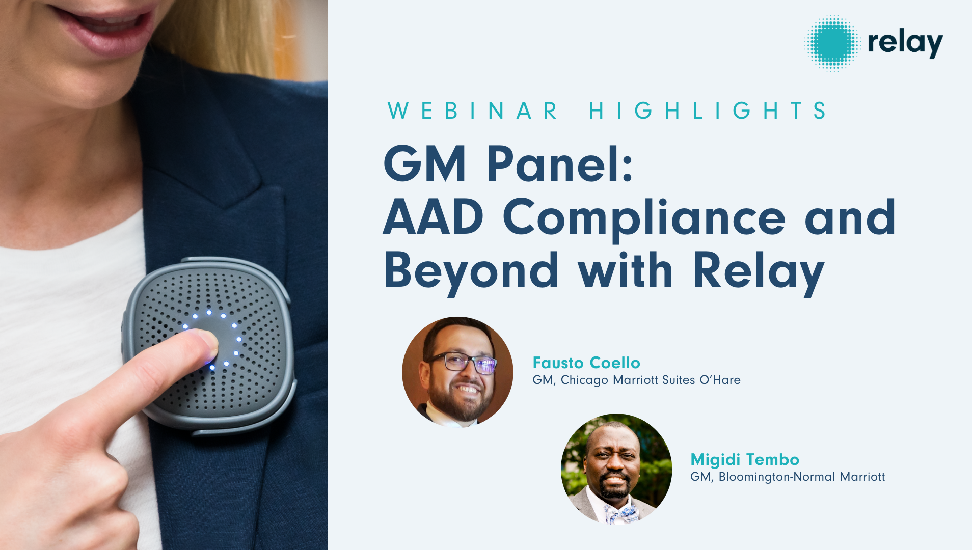 During our recent panel discussion with two Marriott general managers, they discussed not only meeting Marriott’s associate alert device mandate by implementing Relay, but also how they leverage the cloud-based tool for it’s comprehensive communication platform. Tune in to our 5-minute recap of the discussion to learn how Fausto Coello, General Manager of Chicago Marriott Suites O’Hare and Migidi Tembo, General Manager of Bloomington Normal Marriott Hotel and Conference Center utilize Relay to enhance staff safety, streamline operations, and improve overall efficiency far beyond basic compliance.