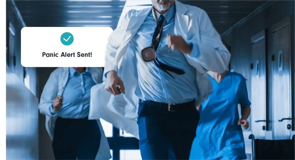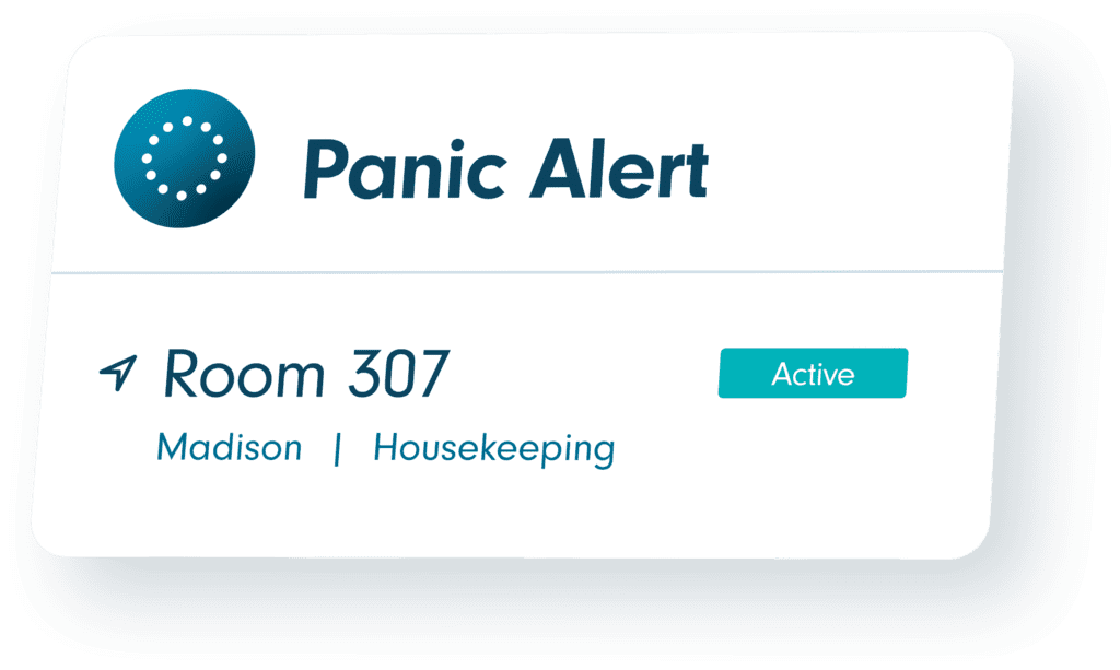 Trigger a panic workflow that alerts team members, sends room-level location and initiates two-way communication.
